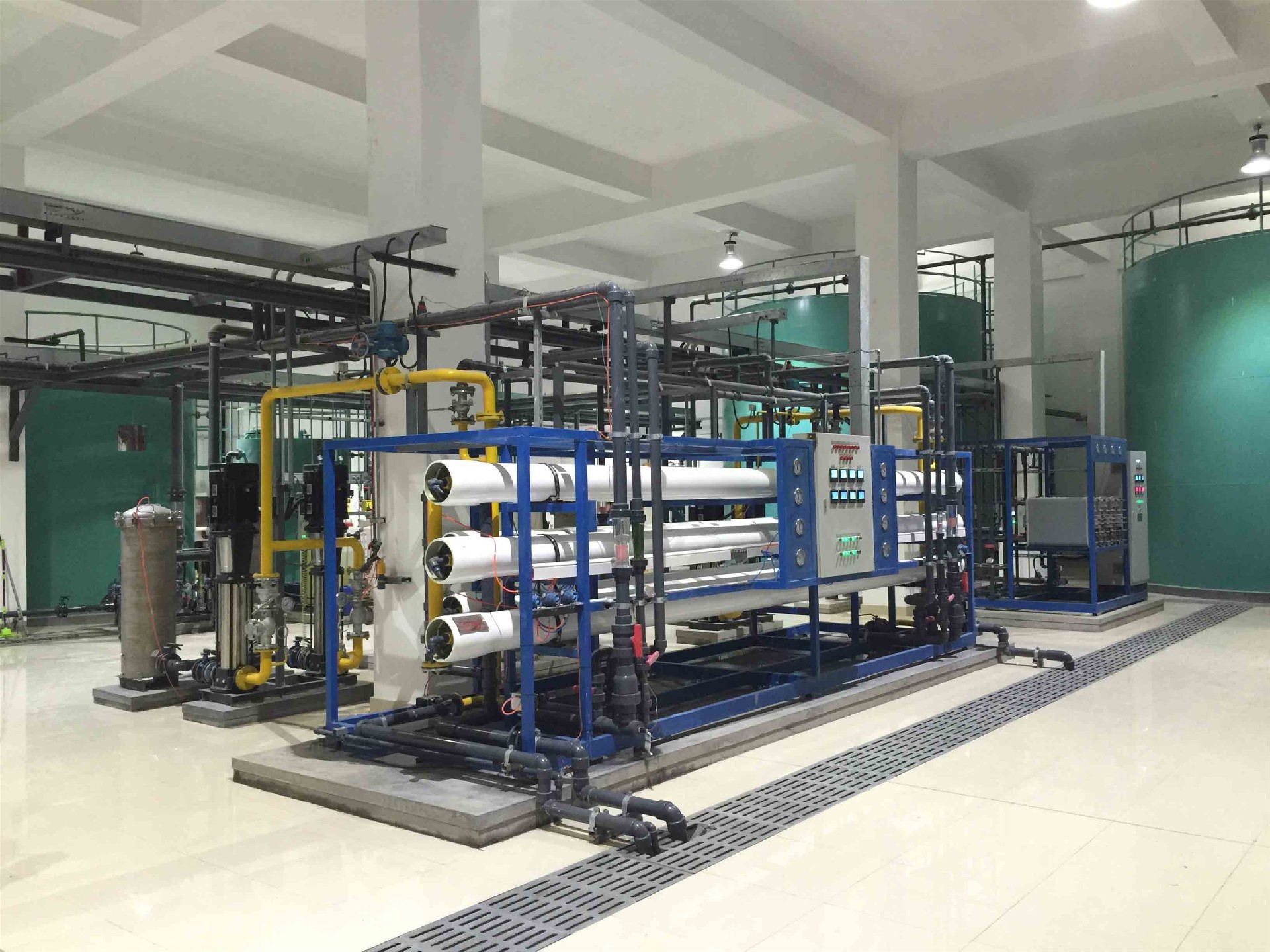 源水→源水箱→增压泵→砂滤器→炭滤器→软化器/阻垢剂→保安过滤器→高压泵→一级反渗透→一级水箱→PH调节→高压泵→二级反渗透→二级水箱→增压泵→精滤器→EDI电除盐装置→超纯水箱(建议氮气保护)→输送泵→抛光混床→UV/TOC→精滤器→用水点→回水(建议管道循环、无死水)