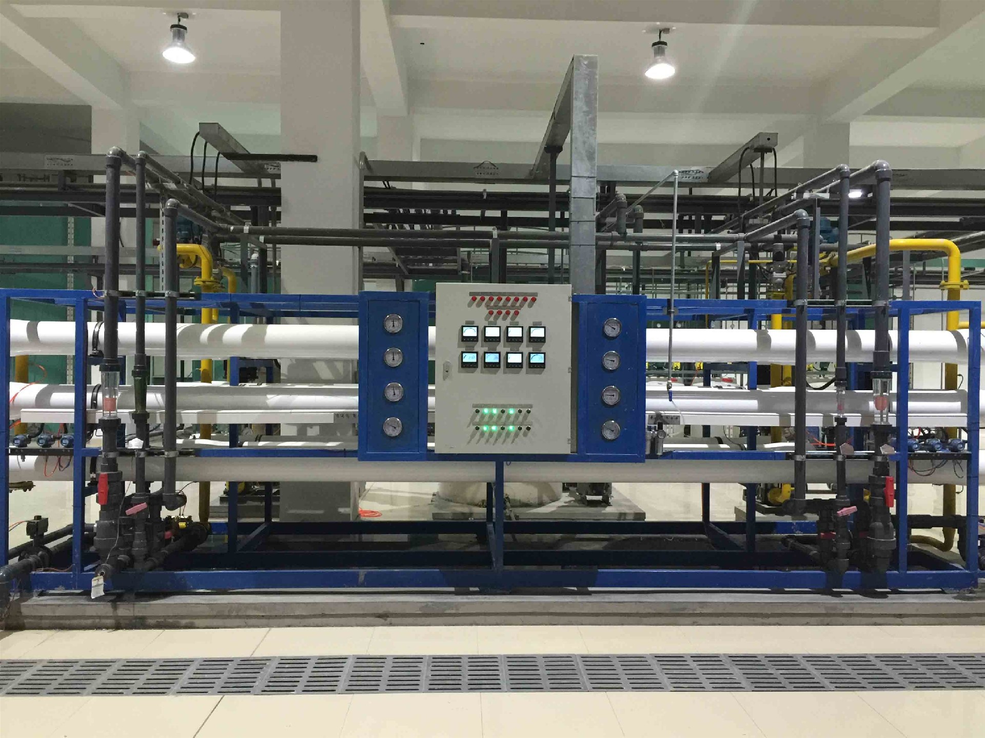 EDI 设备连续电除盐(EDI,Electro deionization),是利用混和离子交换树脂吸附给水中的阴阳离子,同时这些被吸附的离子又在直流电压的作用下,分别透过阴阳离子交换膜而被除去的过程。这一过程离子交换树脂是电连续再生的,因此不需要使用酸和碱对之再生。这种新技术可以替代传统的离子交换(DI)装置,生产出电阻率≥15MΩ.CM 的超纯水。