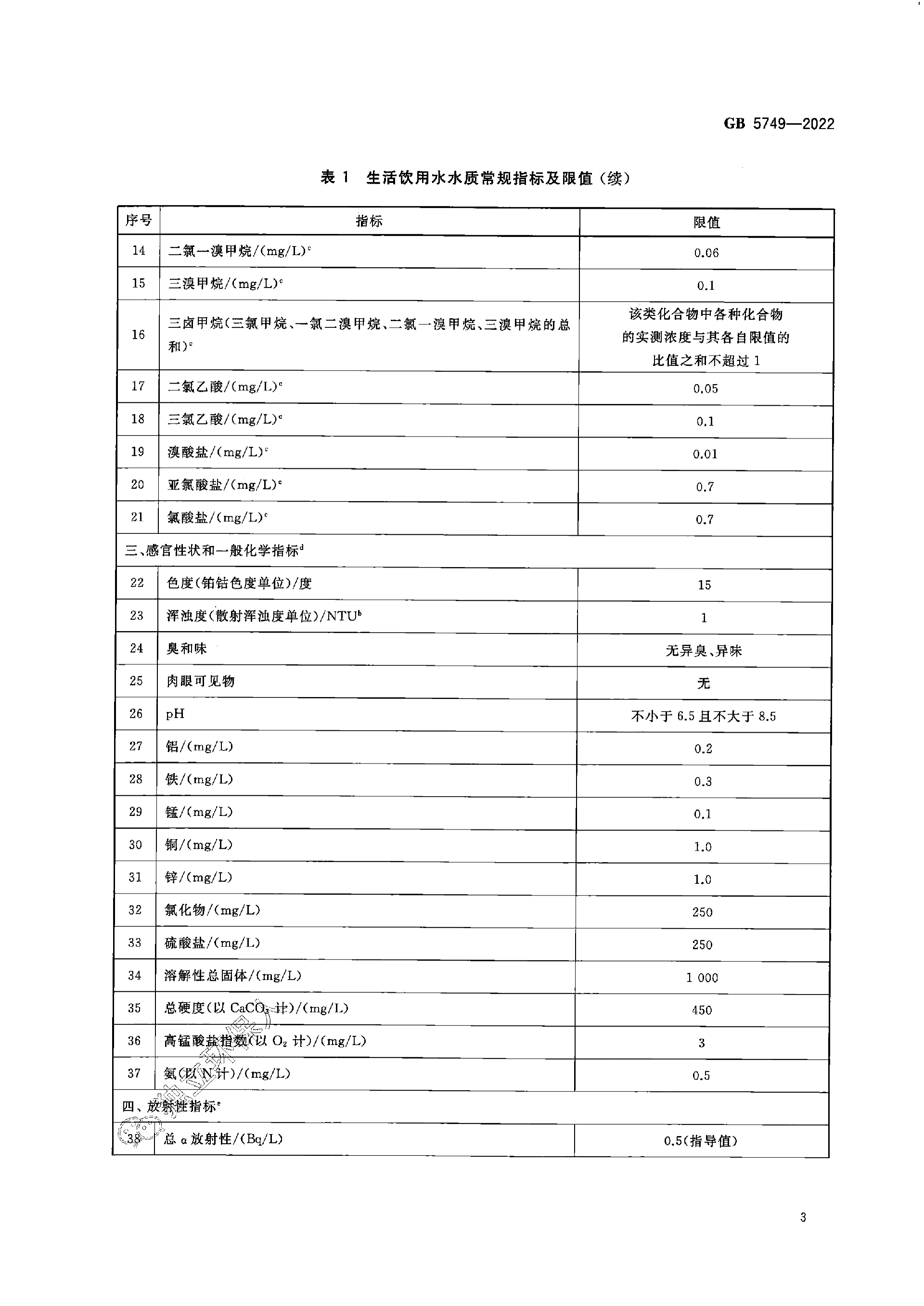 生活饮用水标准GB 5749-2022 代替GB 5749-2006